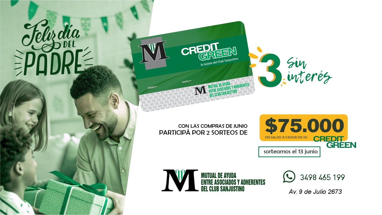 Feliz día del padre! Junio mes de PAPÁ💚🎁 💳 3 CUOTAS SIN INTERES CON CREDIT GREEN Con tus compras ya participas de 2 SORTEOS! También podría gustarte Servicio de enfermería domiciliaria 1 agosto, 2023 FESTEJAMOS EL DIA DEL NIÑO! 24 julio, 2024 3 sorteos, 3 chances para ganar! 14 diciembre, 2023